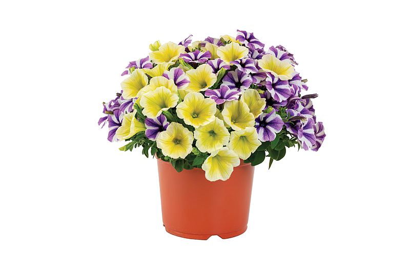 Confetti Gardens are breeder planned mixed containers where the plants are perfectly matched and grow together well all season without any plant taking over any others. This well-matched combination of white Calibrachoa, denim Petunias, and blue charme Verbena is sure to give garden performance all season long.