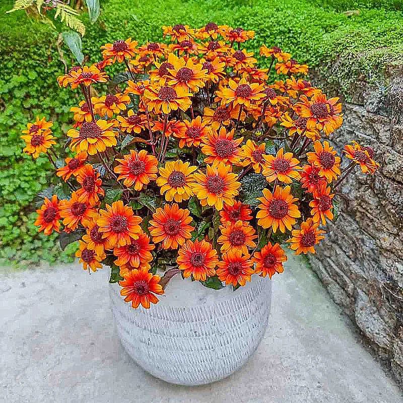 Heliopsis Luna Roja (Luna Roja False Sunflower) is a compact, award-winning, sun-loving perennial prized for its fiery orange-red, semi-double flowers and dark, burgundy-tinged foliage. Growing 16-18 inches tall and wide, it is ideal for front-of-border, containers, and attracts pollinators while resisting deer.