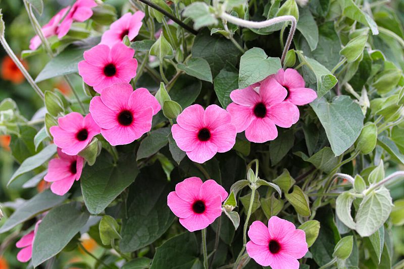 A fast-growing, heat-tolerant vine featuring soft pink, trumpet-shaped flowers with deep, dark, velvety, contrasting centers. Ideal for containers, hanging baskets, and trellises, this 3-to-8-foot-tall annual thrives in full sun to partial shade. It provides continuous blooms from spring through frost with minimal maintenance and attracts pollinators.